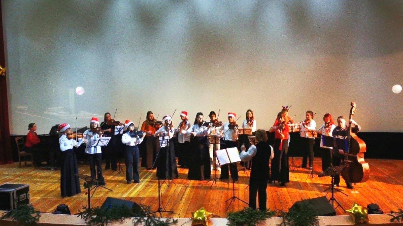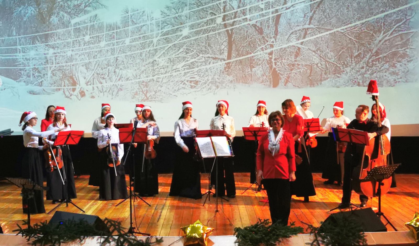Вместе с детским камерным оркестром «Виртуозы Партенита» мы отправились в зимнюю сказку. Звучала музыка Вивальди «Зима» и Андерсона «Санки».
